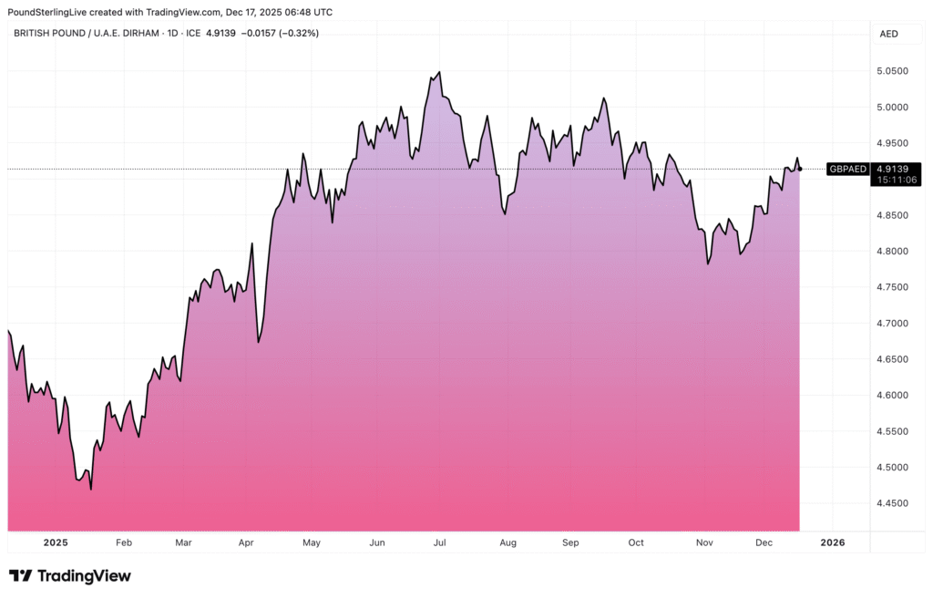 Above: GBP/AED at daily intervals in 2025.
