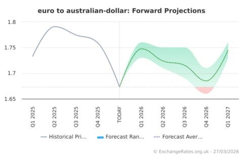 Quarterly Euro projections against the Australian Dollar are drawn from aggregated bank research, prevailing market expectations, and our Sentiment Survey. Methodology: Exchange Rates UK Research computes a weighted quarterly average