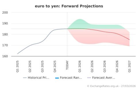 Quarterly Euro projections against the Yen are drawn from aggregated bank research, prevailing market expectations, and our Sentiment Survey. Methodology: Exchange Rates UK Research computes a weighted quarterly average -